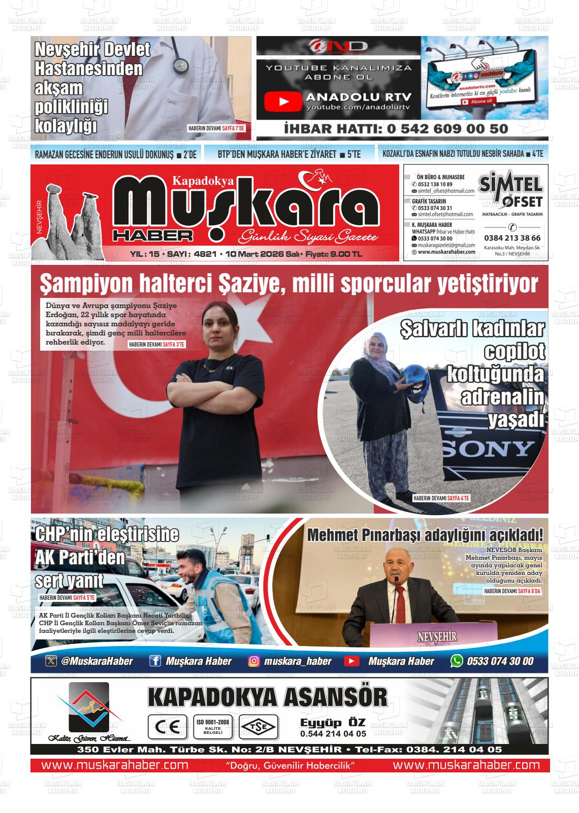 Nevşehİr Yerel Gazeteleri 10 Mart 2026, Salı Günü Manşeti