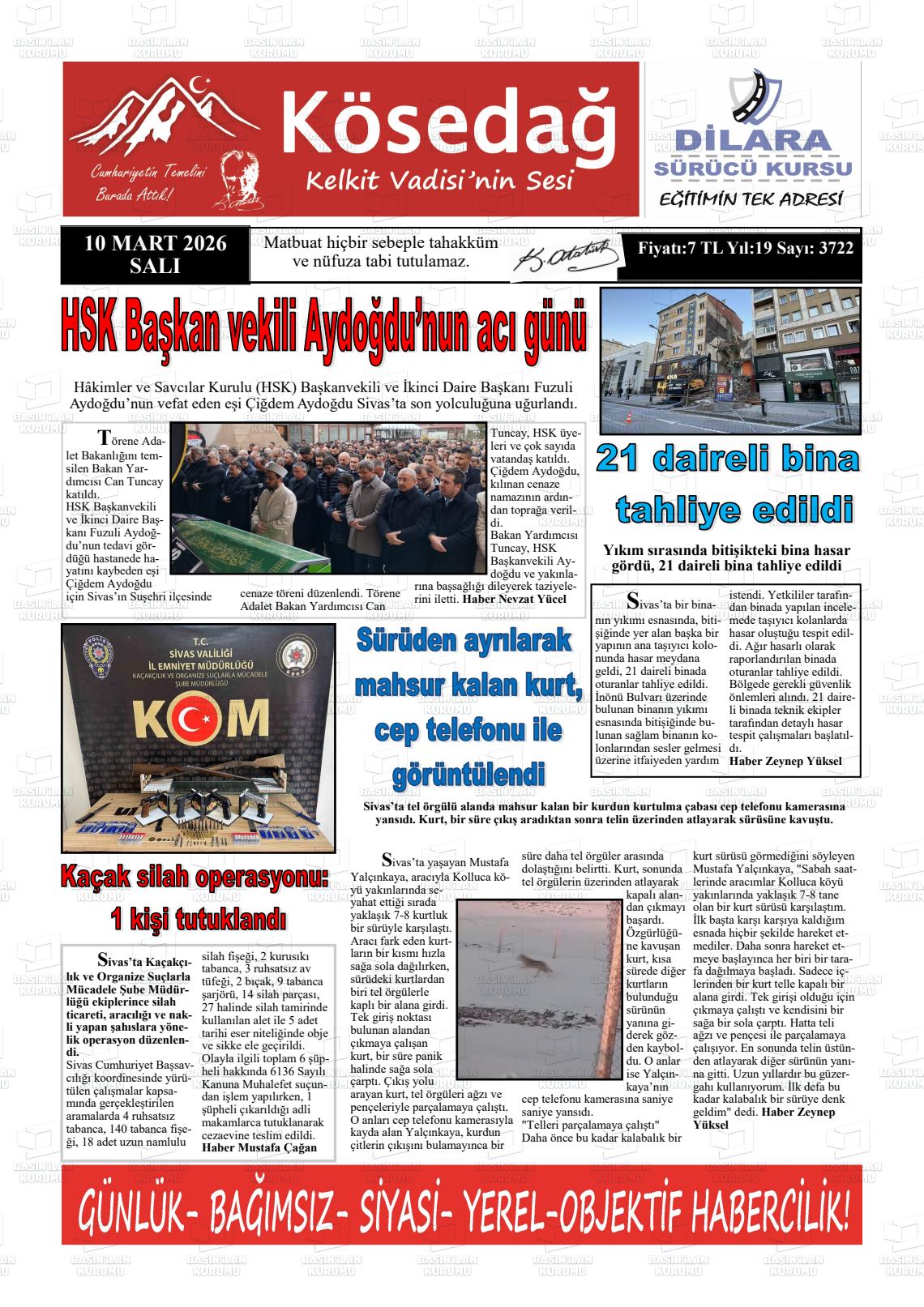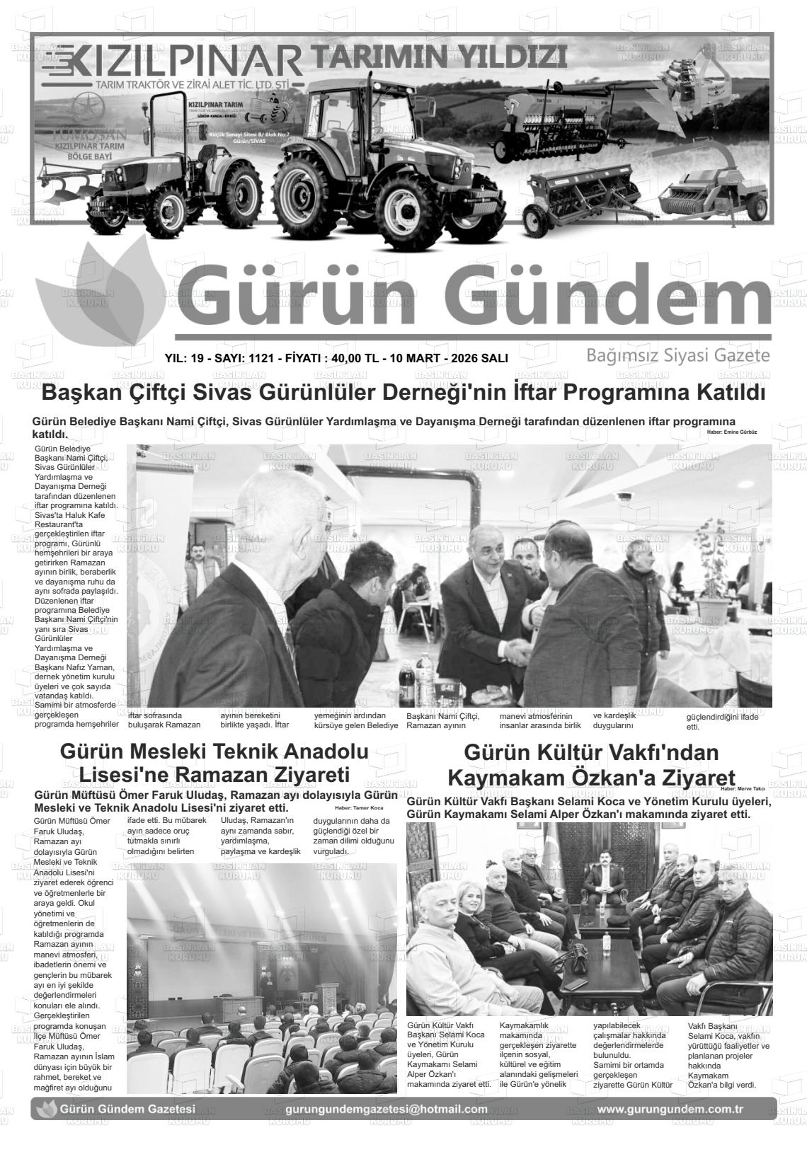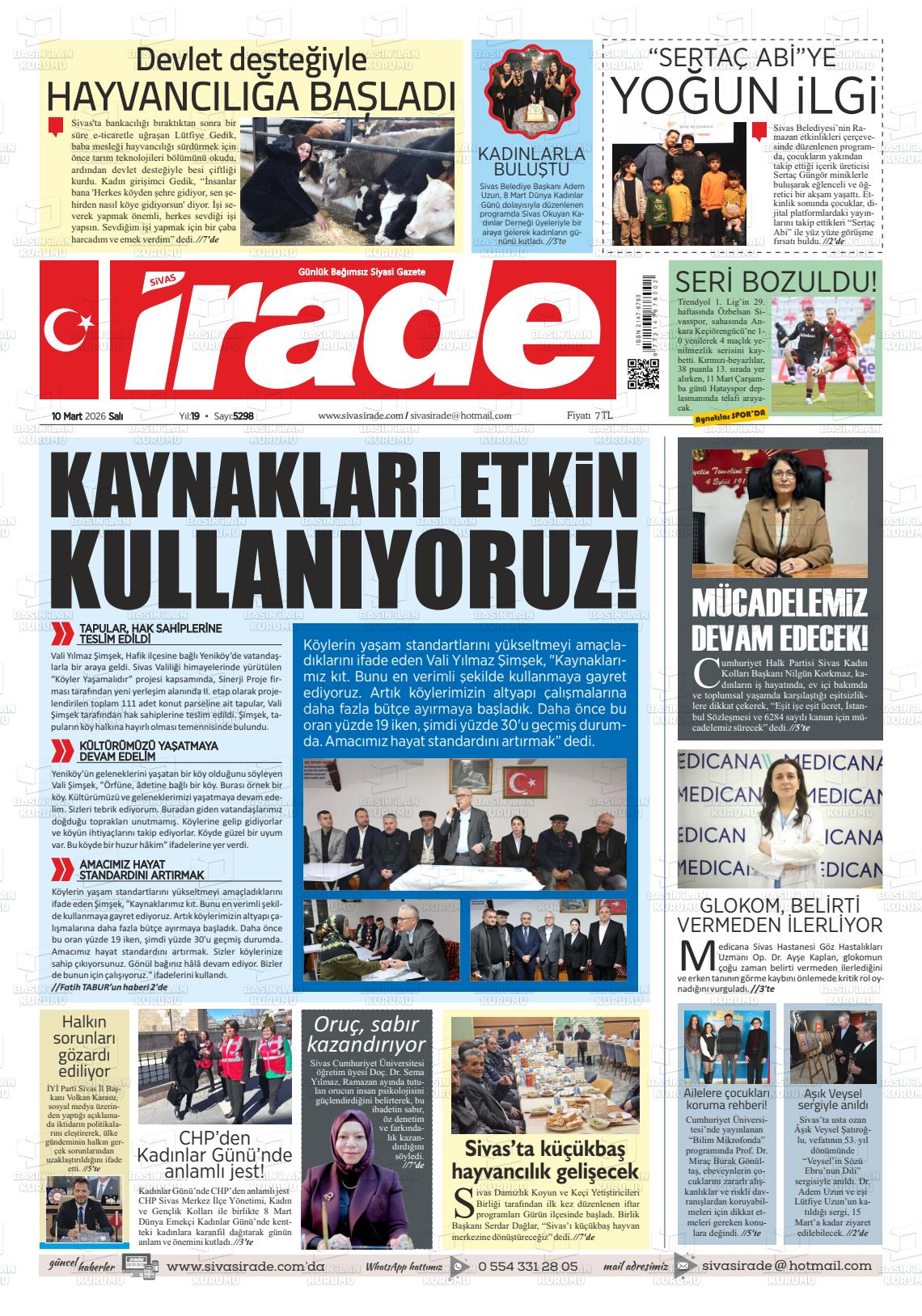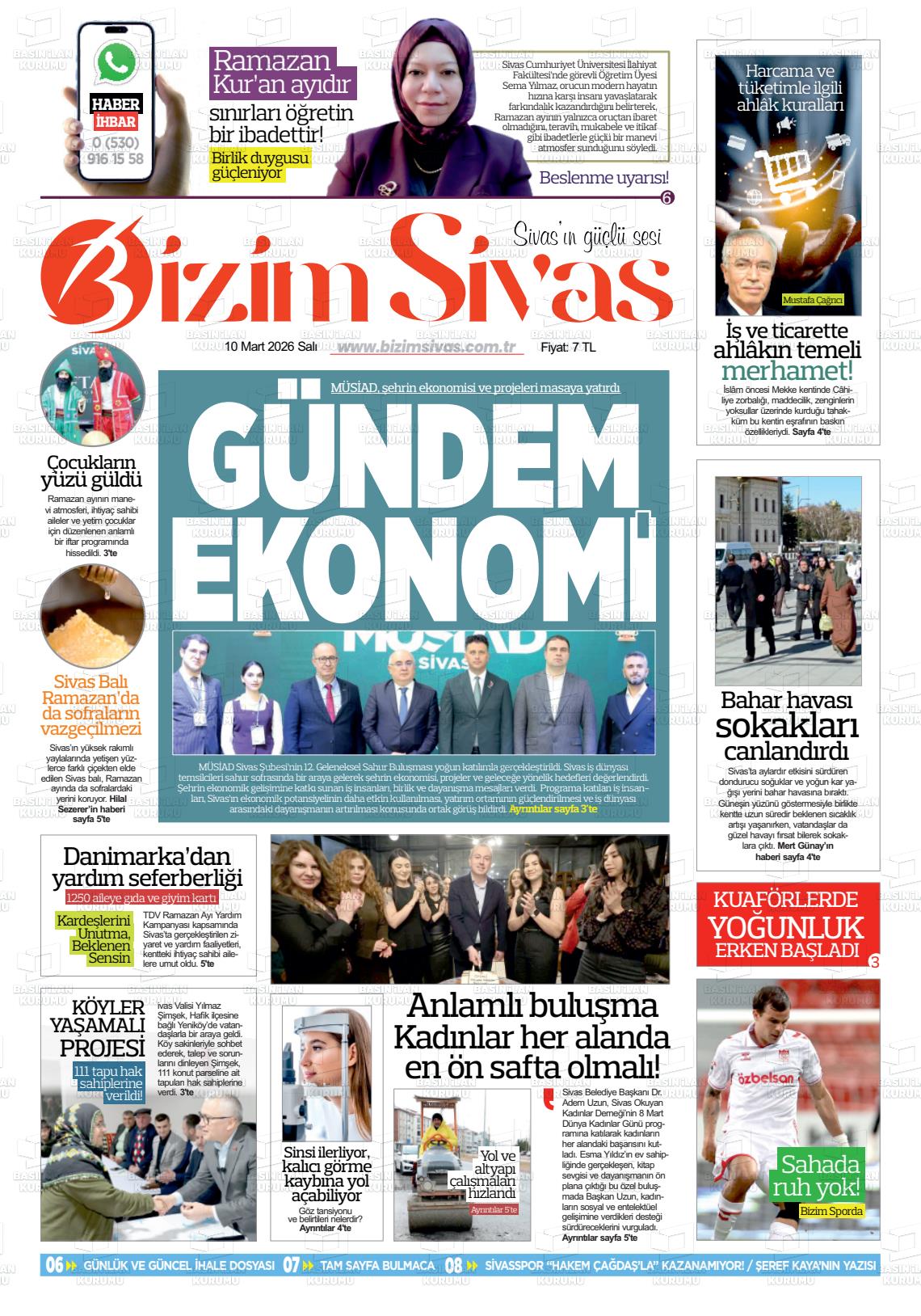 Sİvas Yerel Gazeteleri 10 Mart 2026, Salı Günü Manşeti